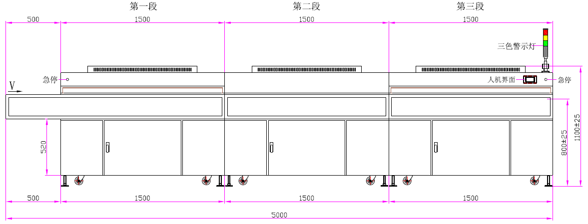 9、輸送速度:0~5m/min(每段速度單獨(dú)控制)