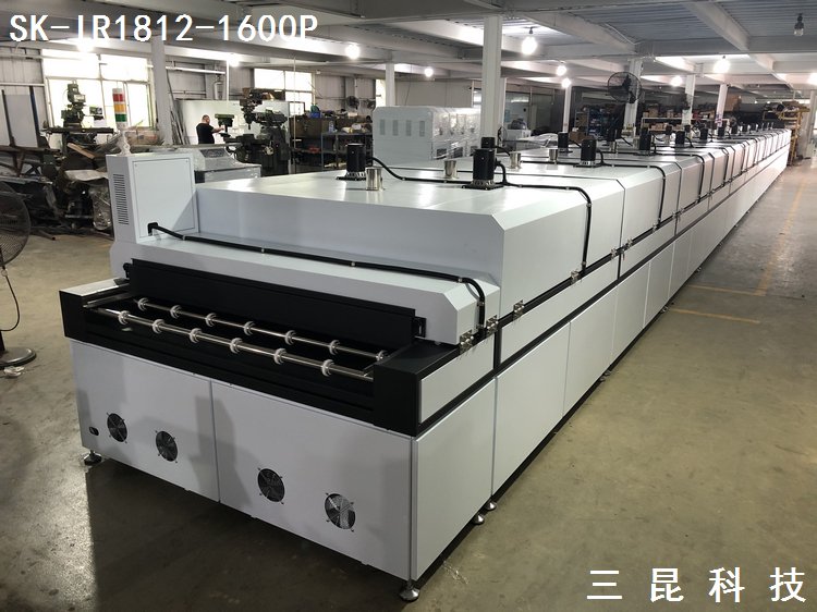 大型IR隧道爐玻璃絲印烘干固化生產線加熱烘烤線SK-IR1812-1600P