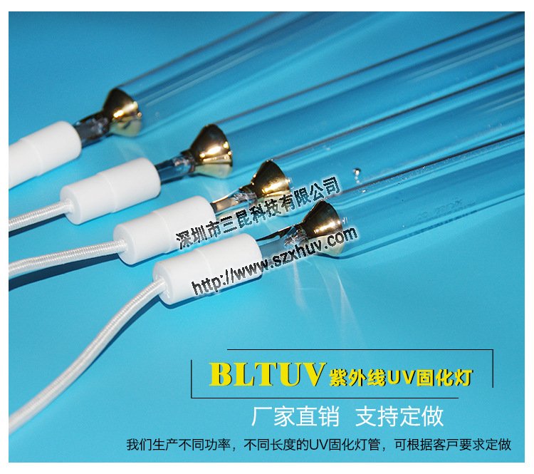 UV燈管在鞋業(yè)、PCB、電子、涂裝、印刷、觸摸屏、液晶等眾多領域得到廣泛應用,主波長為365nm,可對UV油墨快速干燥,功率從1KW到15.6KW,可以根據(jù)客戶要求訂制。
