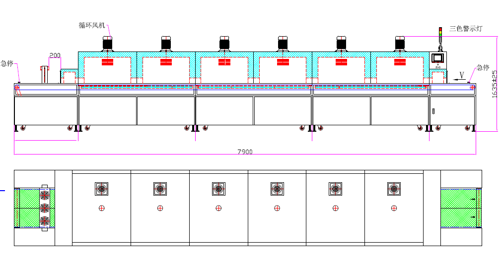 2、發(fā)熱管安裝在工件上方
